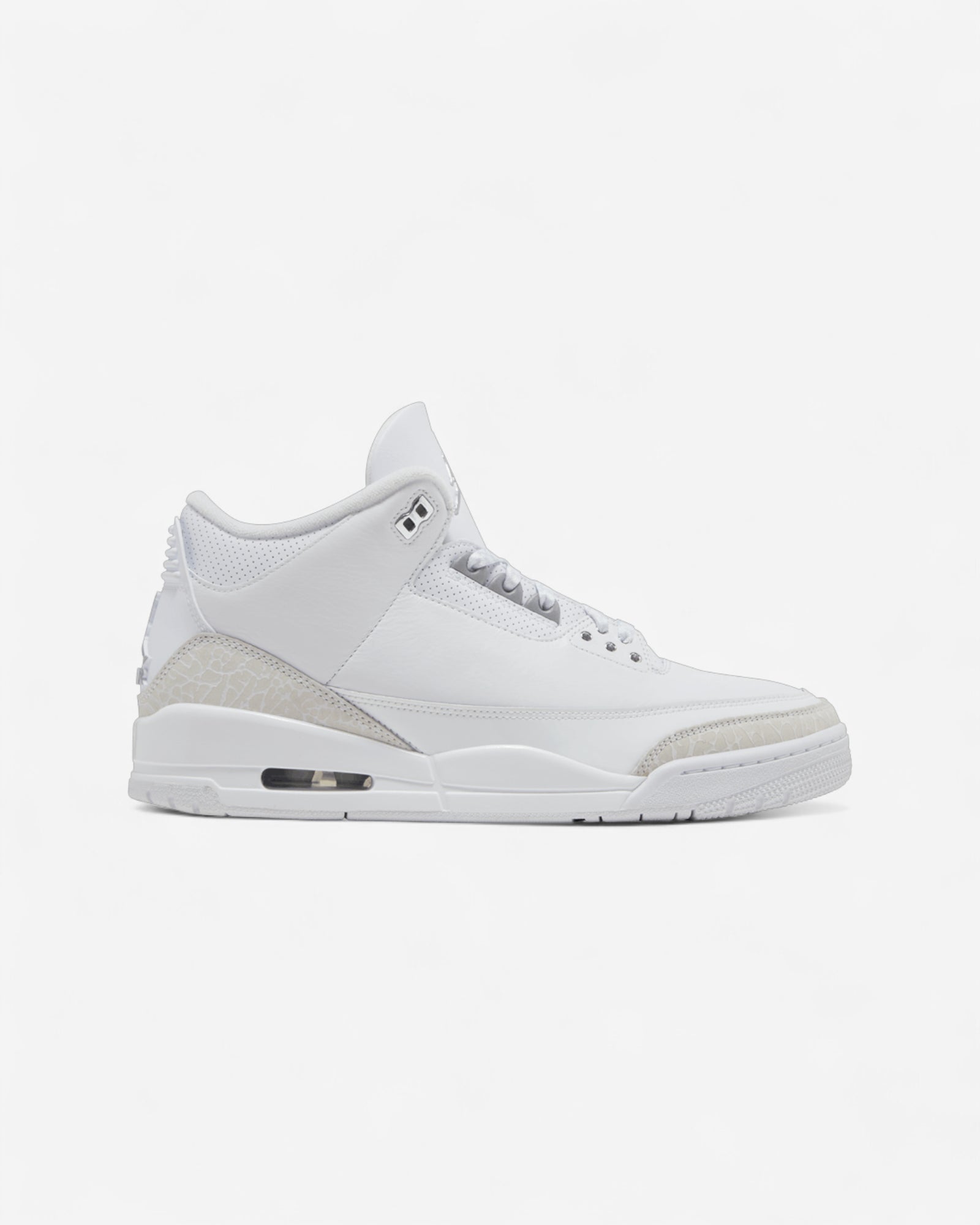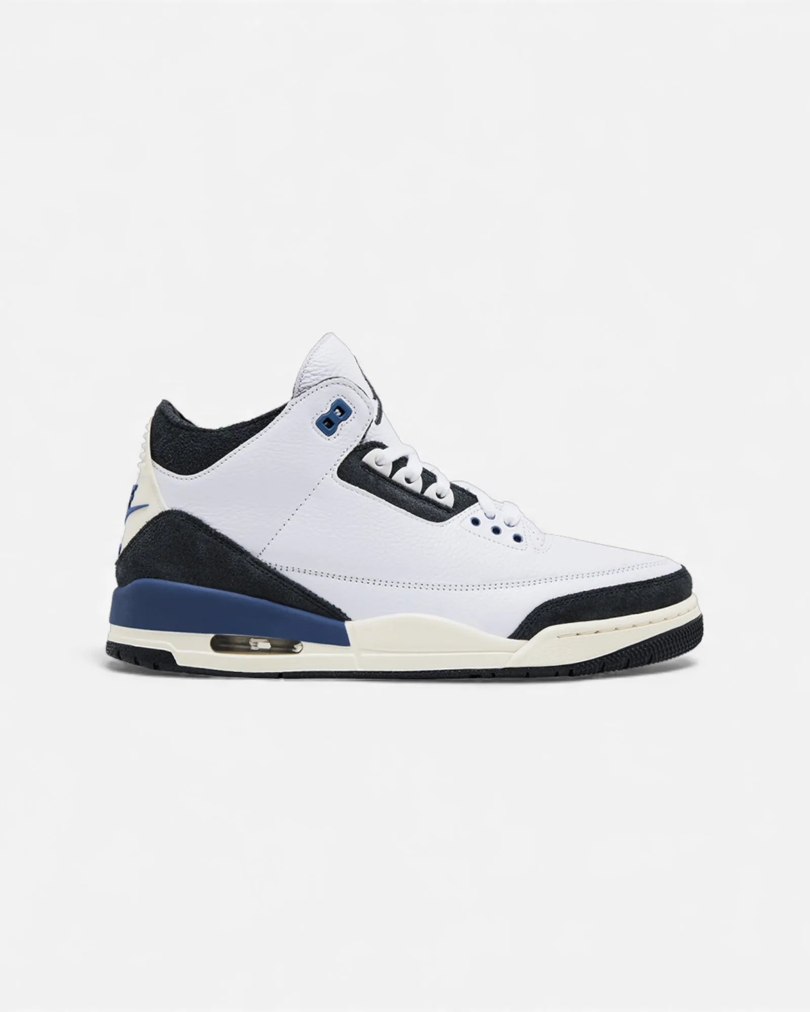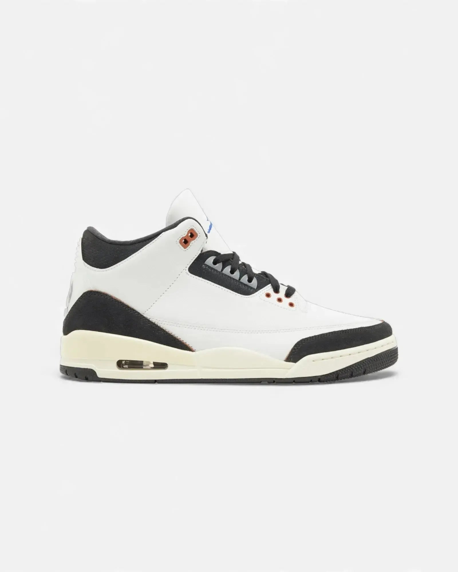 The Jordan 3 A Ma Manière is a collaboration between the Jordan brand and the American boutique A Ma Manière . In 2021, the 2 brands worked on a high-quality Jordan 3. It consists of an upper of a white upper leather embellished with several gray, brown and off-white details. The AJ3 A Ma Manière is part of a sober style bordering on luxury shoes, due to its general quality but also its quilted interior padding. This sneaker was a real success when it was launched in 2021, and is one of the most successful Jordan 3 collaborations in history.